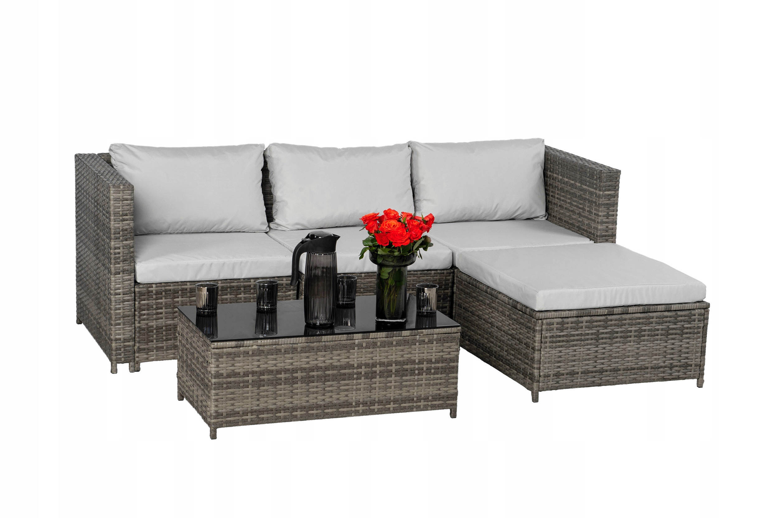 Narożnik ogrodowy BOSTON – zestaw mebli technorattanowych 5-el. MODUŁOWY z poduszkami i stolikiem