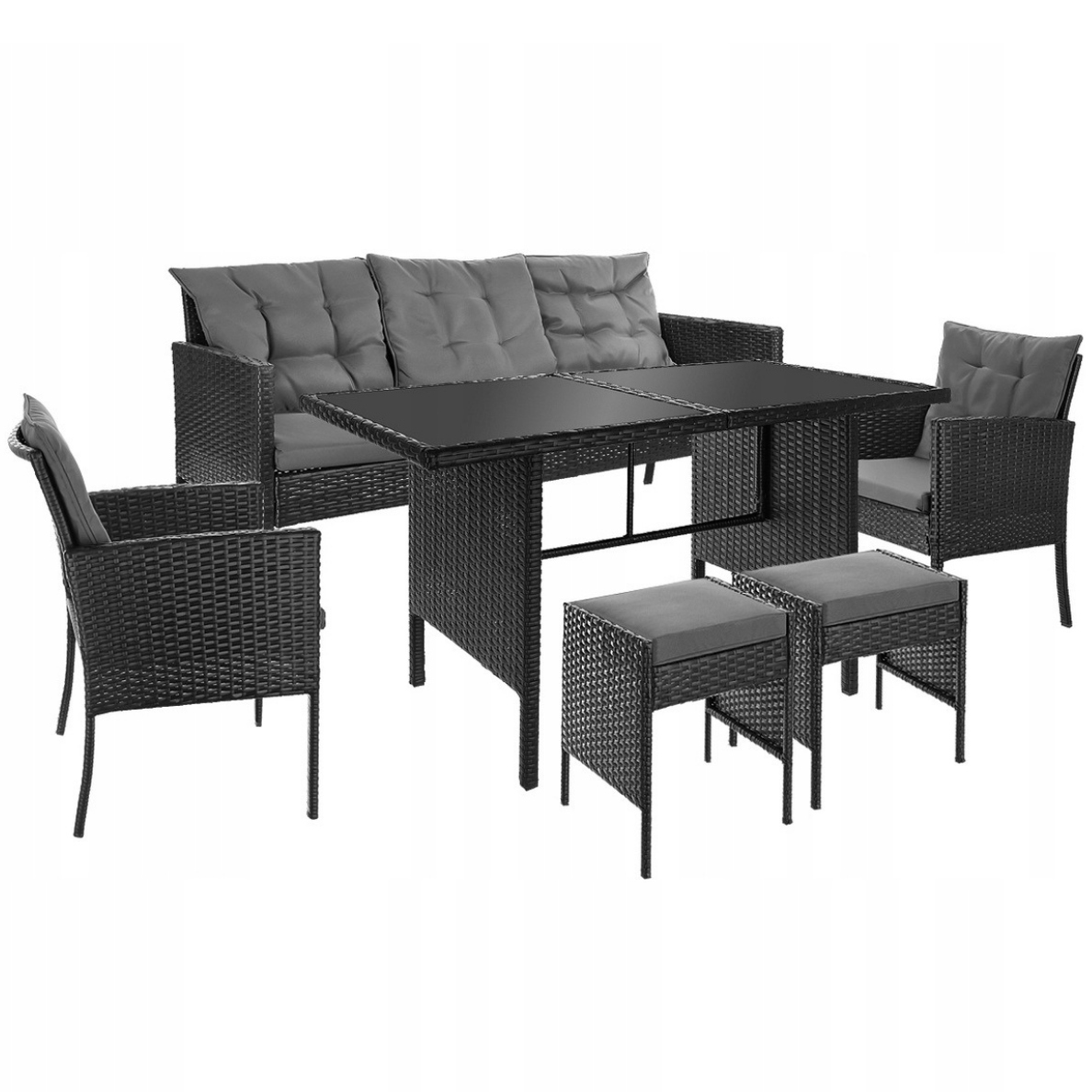 ZESTAW MEBLE OGRODOWE TECHNORATTAN KOMPLET MEBLI MEBLE OGRODOWYCH DO OGRODU Kolor czarny